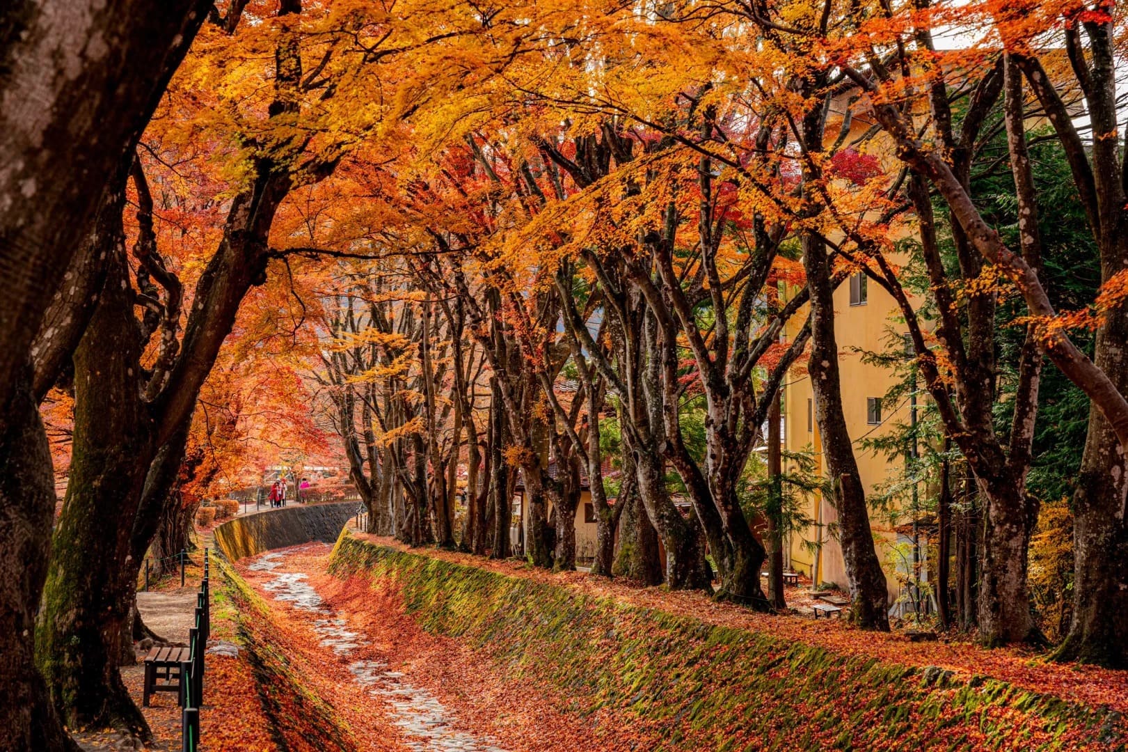 - Đường hầm lá phong – Momiji Kairo: (Cuối tháng 11 trở đi) Con đường đi bộ lãng mạn ven sông, hai bên trồng dày đặc cây phong. Khi lá chuyển sang đỏ, cam, vàng, những tán cây tạo thành đường hầm lá phong tuyệt đẹp – điểm ngắm mùa thu nổi tiếng ở Kawaguchiko.