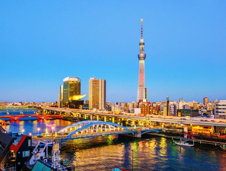 - Tháp truyền hình Tokyo Skytree – ngắm nhìn từ dòng sông Sumida (không bao gồm phí lên tháp)